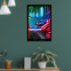 Retro futuristic illustration with 80s vaporware feel and a gritty texture overlay.