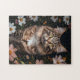 Maine Coon Cat Surrounded by Flowers Jigsaw Puzzle