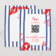 digital download option: hand painted striped background and illustrated shellfish in bright red with lemon slices; fun and casual type QR code optional to rsvp online