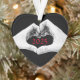 Les mains d'un couple se rencontrent et forment un coeur sur cet ornement de Noël en noir et blanc gras avec une année rouge à personnaliser pour Noël ou l'année courante. Les mains sont esquissées contre un arrière - plan noir. A l'envers, encore en rouge, sont vos Noms personnalisés du couple. Un cadeau amoureux à offrir. Basé sur la photographie originale de JLW_PHOTOGRAPHY.