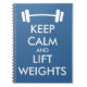 Maintenez journal calme et d'ascenseur de poids de carnet. Bloc - notes d'écriture de Keepcalm pour l'haltérophilie, le culturisme et la forme physique. Idée vintage de cadeau pour le gymnase de sports. Couleur de conception et d'arrière - plan des textes de Personalizable. bleu d'IE. Créez vos propres gardent le calme et continuent la conception de fourniture de bureau. Exemples de parodie de slogan : Gardez le calme et soulevez dessus. Gardez le calme et le fer de pompe pour garder l'ascenseur de calme et de puissance. Refroidissez l'idée de cadeau pour le culturiste ou le haltérophile. Icône d'haltère.