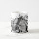 Mug Arrière - plan de couleur blanche avec image vectorielle noire des arbres, arbustes, maison, et les gens sont montrés.