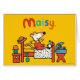 Après être arrivé juste à sa chambre d'hôtel, Maisy se repose heureusement sur son couvre-lit coloré et à pois. Cette illustration de cousines de Lucy de "Maisy part en vacances," édité par la presse de Candlewick, montre également le panda bourré de Maisy, son casquette du soleil, et sa pelle. Les enfants aimeront cette image de la souris familière étant prête pour aller à la plage.