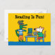 The library is so much fun! Maisy and Charley are enjoying every moment of their time at the library in this Lucy Cousins illustration from her book "Maisy Goes to the Library" (published by Candlewick Press). The two friends are surrounded by books; Maisy sits at the table, reading a book about fish, while Charley balances books on his head!