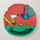 This image from the book "Maisy Goes to Preschool" (illustrated by Lucy Cousins and published by Candlewick Press) features a number of classic Maisy characters. Maisy and friends enjoy time at the playground; they all gather around the bright yellow and blue slide while Mr. Peacock applauds from below.