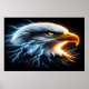 A powerful eagle soars through the sky as bolts of lightning strike in the background, creating a dramatic and intense scene.