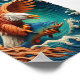 A majestic eagle with its wings spread wide soars triumphantly above the powerful, A majestic eagle with its wings spread wide soars triumphantly above the powerful, though the middle of a wave in the ocean like a suffer, capturing a fish securely in its sharp talons, as the warm glow of the white caps illuminates the scene, highlighting the intricate textures and dynamic motion presenton this eagleabove the ocean waves, on this wood carving texture.