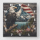 Majestic Eagle Perched on Tree Near Mountains Square Wall Clock