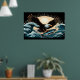 Majestic Eagle Soaring Over Ocean Wave With Fish Poster