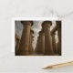 Experience the divine power of ancient Egypt with this captivating postcard showcasing towering temple columns bathed in mystique and golden light. The stunning architectural majesty transports you to sacred halls where pharaohs communed with gods.