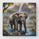 Majestic Elephant by Tranquil Waterfall at Dusk Square Wall Clock