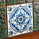 The Majestic Floral Medallion Ceramic Print Tile is a celebration of ornate floral design, blending traditional aesthetics with a modern twist. The central medallion is a kaleidoscope of lush blues and greens, forming a stunning floral pattern that exudes elegance and serenity. This design is a print of an original, intricately detailed tile, offering a smooth, flat surface that mimics the look of hand-painted ceramics. It's perfect for those seeking to bring the charm of Mediterranean or Portuguese tilework into their home without the weight or installation complexity of actual ceramic tiles.