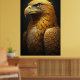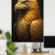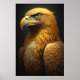 Majestic golden eagle portrait showing a detailed close-up of feathers, sharp beak and intense eye. Dramatic lighting emphasizes texture, strength and nobility for wildlife, conservation and emblematic design uses.