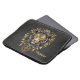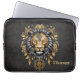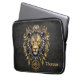 Majestic golden lion head with black mane. Fine artistic details on the face to emphasize the animal's strength and grace. This combination of gold and black gives the design a classy and luxurious feel.