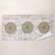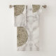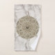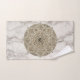 Decorative mandala on a marble backdrop completes this majestic towel set