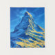 This digital artwork captures the majestic Matterhorn, a iconic alpine peak straddling the Swiss-Italian border. Rendered in a vibrant, impressionistic style, the painting emphasizes the mountain’s grandeur through a dynamic interplay of light and colour. The summit glows with golden-yellow hues.