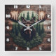 Majestic Moose Art Surrounded by Pine Trees Square Wall Clock