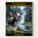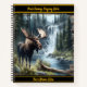 A majestic moose stands gracefully by a tranquil river while a cascading waterfall flows nearby. Lush forests surround the captivating scene, evoking a sense of peace and natural beauty.