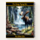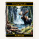 A magnificent moose stands proudly near a serene waterfall, surrounded by lush forests. Morning light dances on the water, creating a peaceful atmosphere in nature.