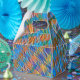 Virtual image of rustic traces similar to blue and orange stripes made of small criss-cross strokes like imperfect checks or lines of coarse cloth, in a tone that looks soft silky due to the contrast between gradient lines and matte or misty parts. - I found this style and effect to be very attractive because it is made up of small rustic dots intersecting and creating a perception of shined cloth, so for this image I made several versions with similar colours and others not so much, and placed the other versions under the brown image, and, you can choose one of the other versions using the editing options for the style available on the website.