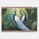 Majestic White and Blue Peacock in Forest Throw Blanket