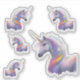 A regal white unicorn with a sparkly horn and bright, bold rainbow mane stands proud. Designed for unicorn lovers, fantasy fans, and anyone who adores ethereal vibes. Set of five stickers features two small mirrored unicorns, two medium mirrored unicorns and one large unicorn sticker. Perfect as a gift, to accessories and decorate with magic.