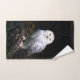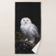 Animal portrait photograph of majestic snowy owl standing on a branch.