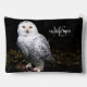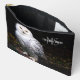 Animal portrait photograph of majestic snowy owl standing on a branch with a personalizable custom name monogram above.
