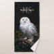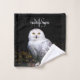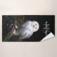Animal portrait photograph of majestic snowy owl standing on a branch with a personalizable custom name monogram above.