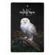 Animal portrait photograph of majestic snowy owl standing on a branch with a personalizable custom name monogram above.