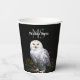 Animal portrait photograph of majestic snowy owl standing on a branch with a personalizable custom name monogram above.