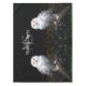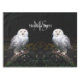 Animal portrait photograph of majestic snowy owl standing on a branch with a personalizable custom name monogram above.