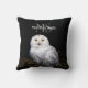 Animal portrait photograph of majestic snowy owl standing on a branch with a personalizable custom name monogram above.