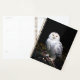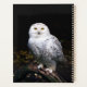 Animal portrait photograph of majestic snowy owl standing on a branch.