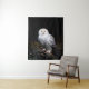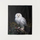 Animal portrait photograph of majestic snowy owl standing on a branch.