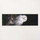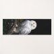 Animal portrait photograph of majestic snowy owl standing on a branch.