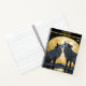 Under a vibrant, full moon, two wolves stand side by side, their heads lifted in a harmonious howl. The night sky is adorned with twinkling stars, and the reflections shimmer in the water, creating a serene and enchanting atmosphere.