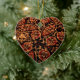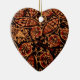 This heart-shaped ornament exudes a warm, exotic feel. Featuring a detail image of a rich, ornate rug.