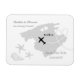 Stylish destination wedding save the date magnet card for couples getting married in the Spanish Balearic Island of Majorca. With starfish and seashells plus a silver grey silhouette map and white love hearts. Very pretty and easy to customize with your personal details.