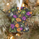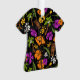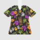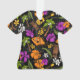 Arrière - plan gris noir et charbon de bois avec violet, vert de palme, orange, verge d'or, brun de cacao et naturel. Le Makapuu Beach Hawaiian Tropical Tiki Batik est un tirage de conversation de tikis, palmiers, poissons tropicaux, ukeleles, hibiscus et fleurs de plumeria. Ce design rappelle les motifs utilisés dans les chemises vintages en aloha dans les années quarante et cinquante. La texture batik ajoute une texture unique tout au long de la conception.