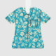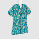 Teal colorway. A conversation print of tikis, palm trees, tropical fish, ukeleles, hibiscus and plumeria flowers are reminiscent of the designs used in vintage aloha shirts in the forties & fifties. The batik texture adds a unique texture throughout the design and comes in several colorways.
