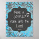 Make a Joyful Noise Bible Verse Quote Posters and Prints. Beautiful vintage inspired background with blue distressed damask with grey highlights, frame this popular inspirational scripture from Psalms 100.