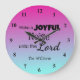 Make a Joyful Noise unto the Lord with this beautiful wall clock. Featuring a purple and blue ombre design, "Make a Joyful Noise unto the Lord' is written in lovely black font. Personalize your name underneath.