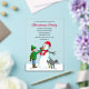 Christmas Party Invitation with an illustration of a boy and dog building a snowman.