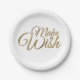 Make a Wish Birthday Paper Plate has gold lettering on a white background.