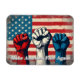 A vivid street-art style image where three bold fists rise against a vintage American flag, echoing a timeless call for freedom, courage, and unity — a visual anthem of resistance and hope.