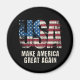 A distressed and grunge-style "Make America Great Again" magnet. Perfect for any true conservative, this magnet is a bold statement of your values. Stick to your fridge, filing cabinet, car or any metal surface.