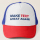 Make Text Great Again text of blue and red colours. Trucker hat for anyone. You can change the word TEXT to customize the design to your needs and wants. Have fun!