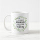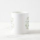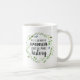 Cute and inspiring mug for women who change the world features the quote "well behaved women rarely make history" in brush lettering, inscribed inside a watercolor botanical wreath in sheer green and blue.