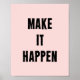 "Make It Happen" - An inspiraional typographic quote print, in pink and black typographic design to suit any home, gym or office. Helpful for motivating you to achieve your desired fitness or weight loss goal. This poster will make a great gift for the gym junkie, entrepreneur, or student. Note that you can change the poster size to larger or smaller if you prefer without any loss of quality - just keep it around the same proportion to 8x10 inches, for example, change it to 16x20 inches for a larger size.